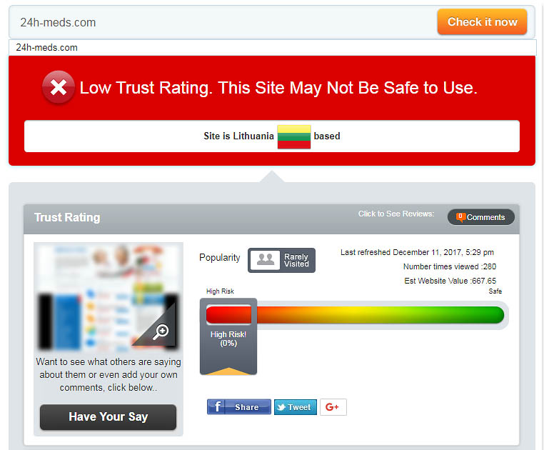 Lithuania is considered a high-risk country in terms of online fraud and it is advisable that clients express extreme caution when making any transaction with this company. If you really care about your money, it would be wiser if you avoid this Rogue Pharmacy altogether.