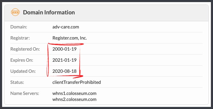 The domain is registered to ‘ADV-Care Pharmacy Inc.’ which is what we would expect. It is good to see they aren’t using a privacy service to keep their details out of the public records.