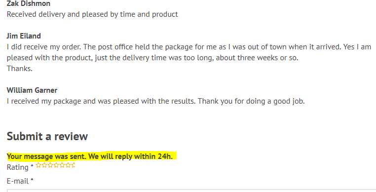 There is no way that customers can give their feedback about the site. It has a Testimonials’ section that seems to be functional but it actually isn’t. On an attempt to post our feedback on the site, the system says I will get back to you in 24hrs. it has been over 4days and we haven’t received any response
