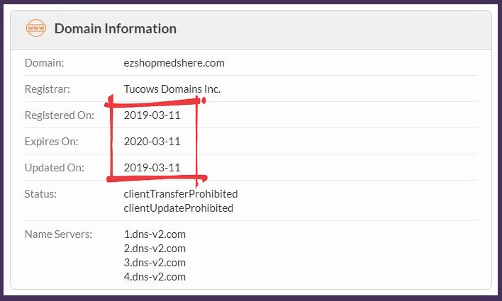 Since the domain was registered in 2019, you can clearly understand that the platform doesn’t have any experience or expertise in the underlying industry. This scam drugstore has surely started operating its business quite recently. The domain will be expired on 2020-03-11. Additionally, we have found that the domain was last updated on 2019-03-11.