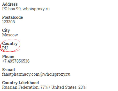 When you look at the complete address, the address comes up in Moscow. However, you get a PO Box number. It means that the owner of the domain does not disclose his/her identity. The ownership country is not clear either. Due to this very reason, if you like to buy from pharmacies that are transparent, this is not one.