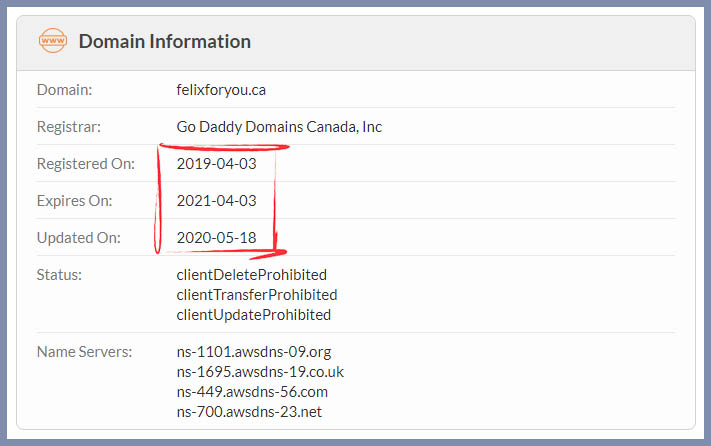 | felixforyou.ca - Whois | ||