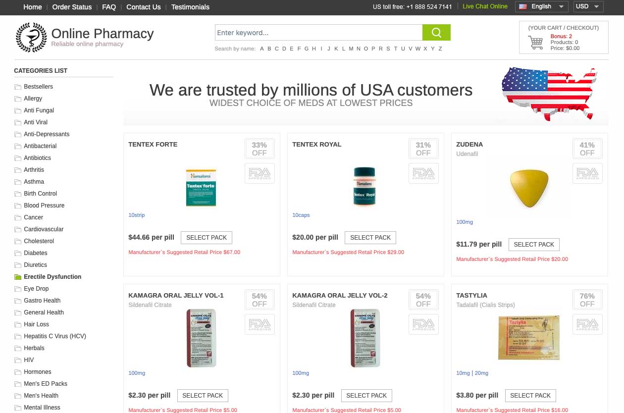 This online pharmacy is far from original, we’ve seen many very similar stores before. These other online stores are identical in virtually every way, selling the same pills and using the same graphics.