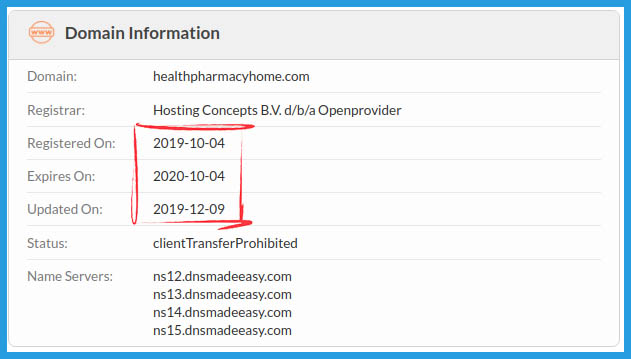 On the pharmacy website, it says that it was last updated in 2019 which is true, however, this site is only a few months old so it is very risky to use as there is little loss for the website owners to take your money and shut down the website.