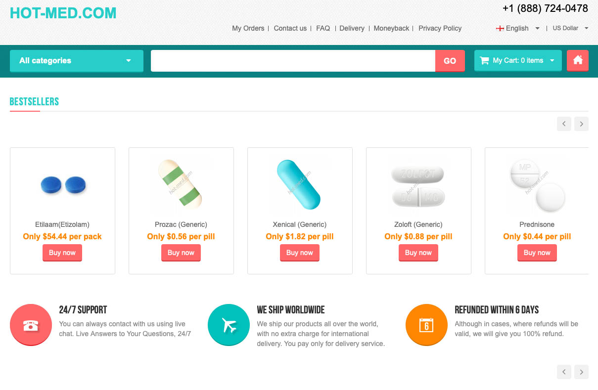 Hot-med.com is a pharmacy that offers 24/7 support and fast refunds. They offer low prices and say that their medication is of the highest quality. We review this pharmacy to find out that things aren’t as good as they claim.