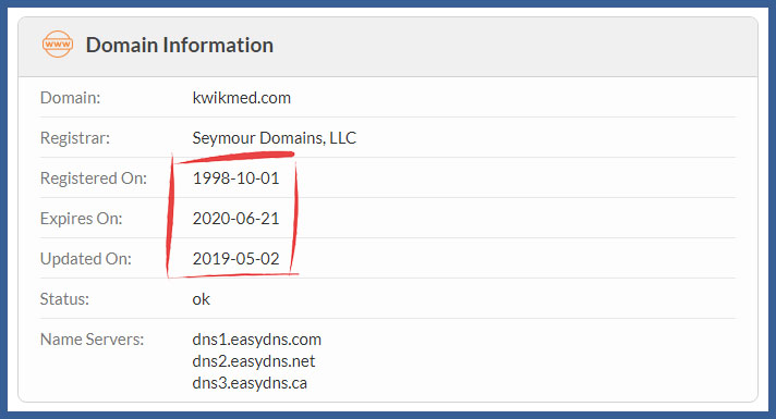 The domain for this website was first registered on the 1st of October 1998 with the last time the website was updated being on the 2nd of May 2019. The domain for this online pharmacy is set to expire on the 21st of June 2020.