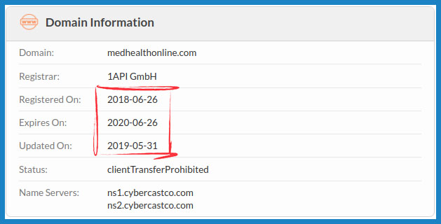 The domain for this online pharmacy was first registered on the 26th of June 2018 with the last time the domain was updated being on the 31st of May 2019. Currently, this domain is set to expire on the 26th of June 2020.