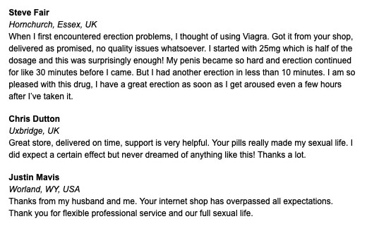 Visiting the pharmacy’s testimonials page may let you see if clients leave great reviews. While these reviews might seem like they praise the services of the health facility, they are most likely Fake, and a glance through the guest book can reveal the truth. Rogue pharmacies, such as MedsOffering.com, place fake reviews on their site.