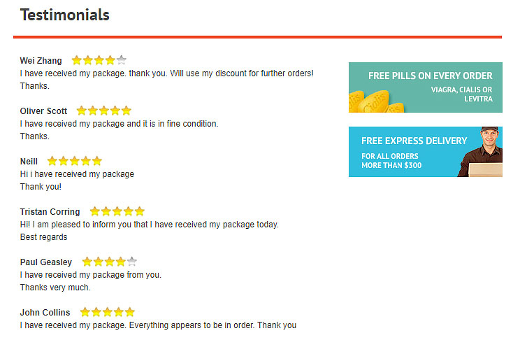 The opinions of other people are really useful when it comes to evaluating how reliable a website will be. You can learn if products are delivered promptly and problems dealt with successfully. When you find a lot of positive customer reviews it gives you more confidence in the online retailer. People which set up scam online pharmacies know this full well and know that it will earn them more money, which is why you often see fake reviews on these sites.