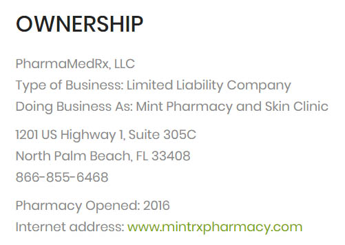 The pharmacy has a corporate page as well. Here it provides information about the business which owns the store – PharmaMedRx, LLC – as well as their corporate address.