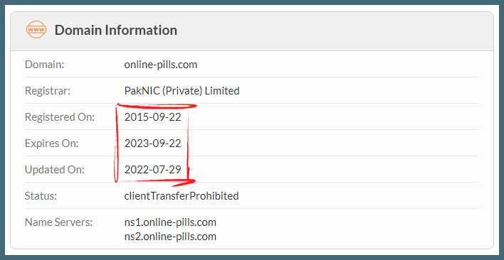 The details in the domain records show that this pharmacy could have been in business for 7 years. This is a longer time than a lot of pharmacies we look at, but it doesn’t necessarily indicate that this store is a good bet.