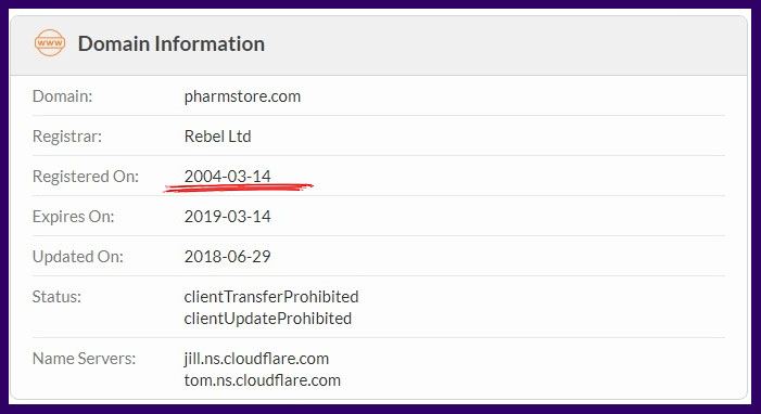 We started off our investigations by assessing the domain of this pharmacy on whois.com. Apparently, this pharmacy has been operating for close to 15 years, offering its services to different people across the globe. Additionally, the domain was registered on March 14, 2004, and is set to expire in 2019. The longevity of the website is a good indication that the pharmacy is probably genuine.