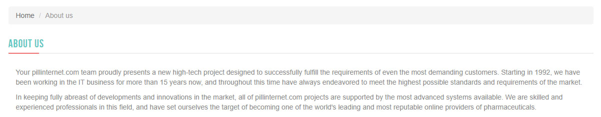 Even if the parent company has experience in the IT field, it does not mean that the pharmacy is legit or operates as per the industry standards. That is why, when you look at the about us page of the pharmacy, you will realize that the information is pretty vague. It is one of the first red flags to watch out for when researching this pharmacy.
