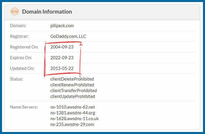 The domain came into existence on 23 September 2004. It is usually seen that the registration of fake pharmacies domain is done for a short period. Pillpack.com has been registered for a long time and this is why it is hard to doubt this pharmacy. It will expire on 23 September 2022.
