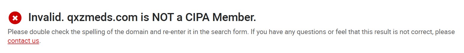 Regulatory approvals are important because they are another method that can show whether the website is a scam or has good viewers and customers. According to CIPA, qxzmeds.com is not enlisted in trustable pharmacies so there can be some concerns related to the authenticity of the website. Similarly, when we checked qxzmeds.com on NABP as expected, they are not registered with NABP either.