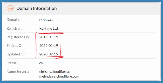 The domain of this drugstore website was first registered on the 19th of January 2016 and last updated on the 15th of February 2020. Furthermore, the domain is set to expire on the 19th of January 2022.
