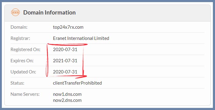 The domain records for this address indicate that the site is new. The domain was only registered less than two months ago, and this increases the chances that the pharmacy is Scam business.