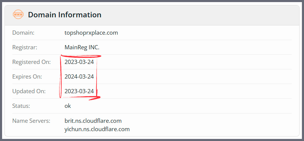 Topshoprxplace.com was registered on March 24th, 2023. As compared to other pharmacies that have been in business for decades, Topshoprxplace.com is comparatively new so it is fair to assume that their clientele may be smaller.