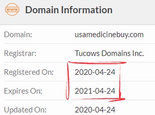 Also, it is better to check the domain age of any pharmacy. It will help you understand the age of pharmacy in years and whether it is trustworthy or not. When you look at the domain age of this pharmacy, it was registered in 2020. In fact, it was registered in April itself, which makes it clear that the pharmacy has been around for less than one month.